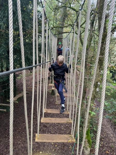 En plus des entrainements habituels et d'une journée complète au stade ou les jeunes ont pu découvrir la pratique du footgolf, toutes les catégories jeunes du club ont eu la chance de s'écarter des terrains pour vivre une super expérience en pleine nature, avec une sortie à l'accrobranche de Gimouille (Fun Parc aventure). Ce fut l'occasion parfaite pour renforcer les liens entre les joueurs et travailler leur esprit d'équipe, tout en prenant du plaisir à relever des défis physiques en hauteur. Entre l'entraide, le dépassement de soi et les éclats de rire, cette sortie a offert à chacun des souvenirs inoubliables.