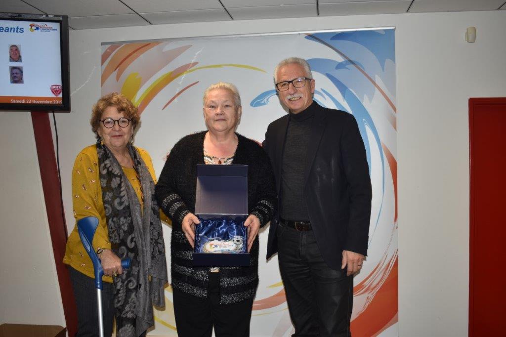 Samedi, dans l'enceinte du DFCO avant le match DIJON/RENNES notre amie Solange LUCISANO a été honorée par le Président de la ligue Daniel FONTENIAUD et Françoise VALLET Présidente du district aprés toutes ses années de bénévolat pour les clubs de Guérigny et de l'U.S. Coulanges Football.