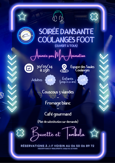 Venez nombreux à la soirée dansante de l'U.S. Coulanges Foot