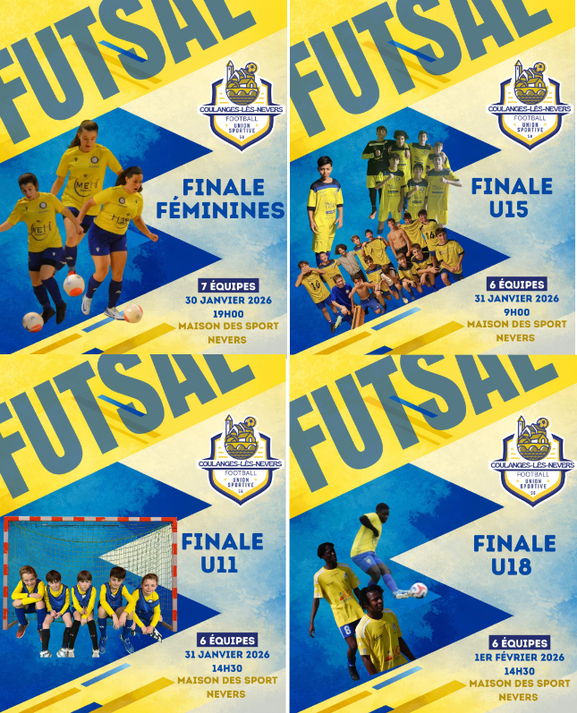 Place à nos U15 qui affronteront FC Nevers (1 & 2), FC Decize, Nevers Banlay et UCS Cosne. Une belle occasion pour le groupe de montrer son sérieux et sa progression en salle.
