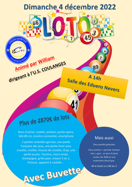 Dimanche 4 décembre 2022 le club de Coulanges organise son Loto